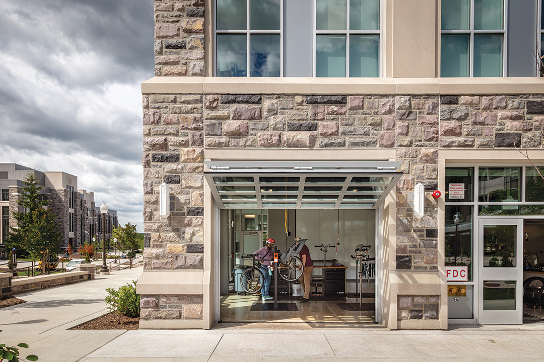 The Virginia Tech Multi-Modal Hub enhances campus mobility by consolidating transit, pedestrian, and bicycle access into a single, accessible location. The 12,000-square-foot facility, paired with 18 bus slips, houses offices for University and transit staff, public waiting areas, restrooms, and a dedicated bike hub and repair shop. Designed in a Gothic style, the building complements the surrounding historic campus architecture while providing modern functionality.
