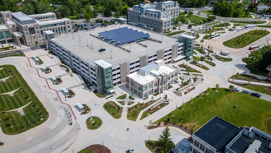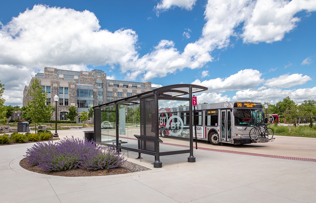 The Virginia Tech Multi-Modal Hub enhances campus mobility by consolidating transit, pedestrian, and bicycle access into a single, accessible location.