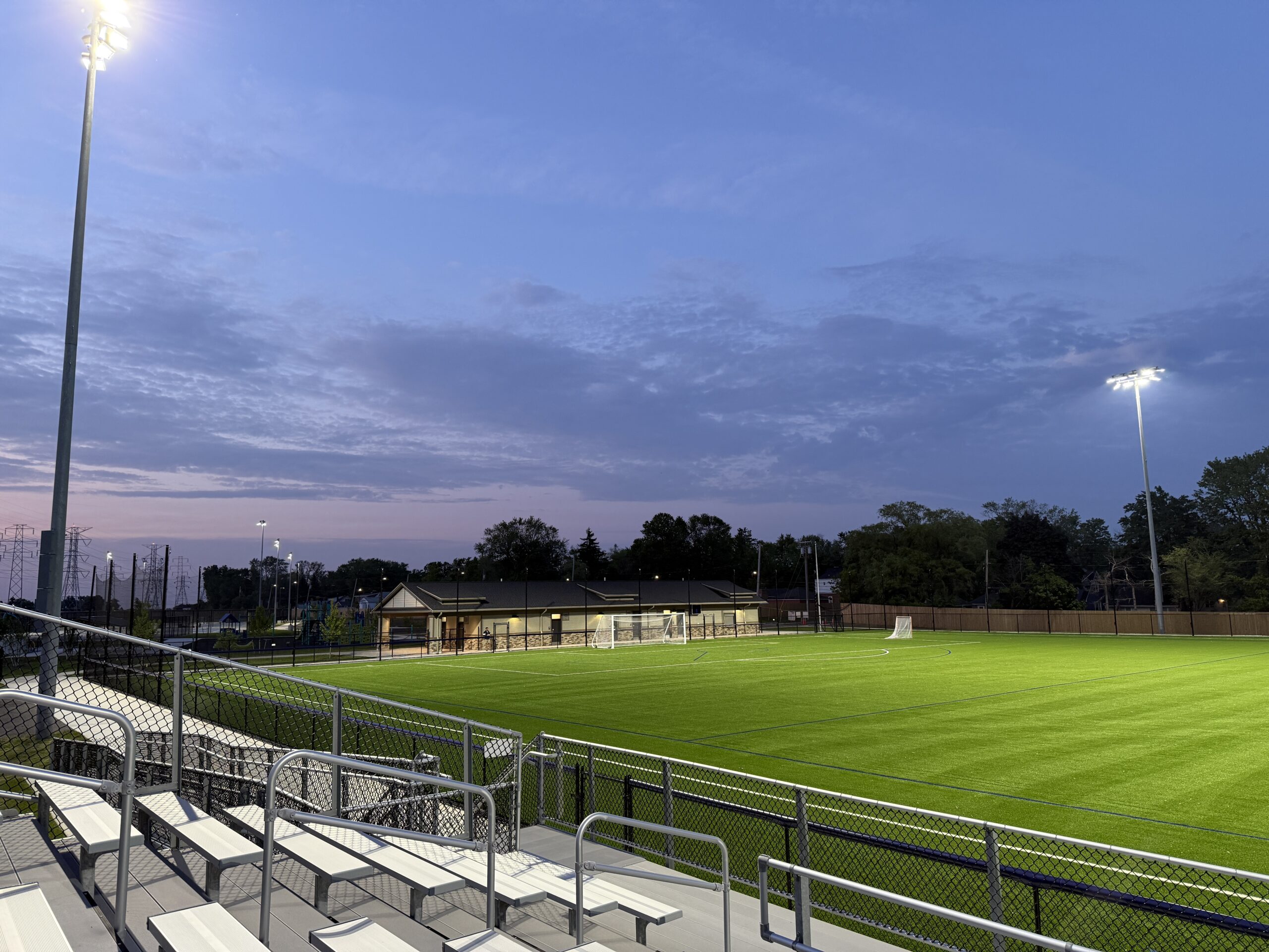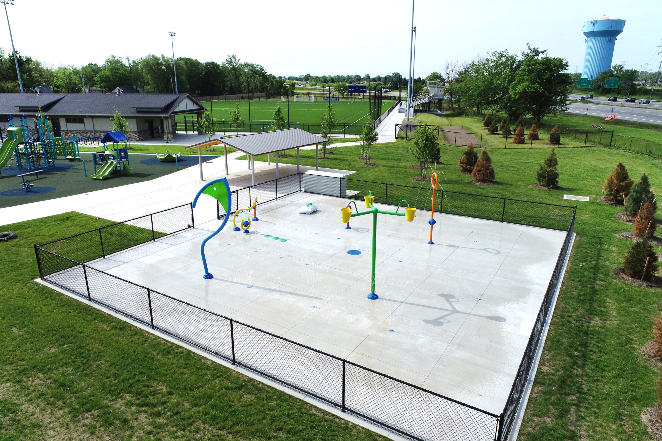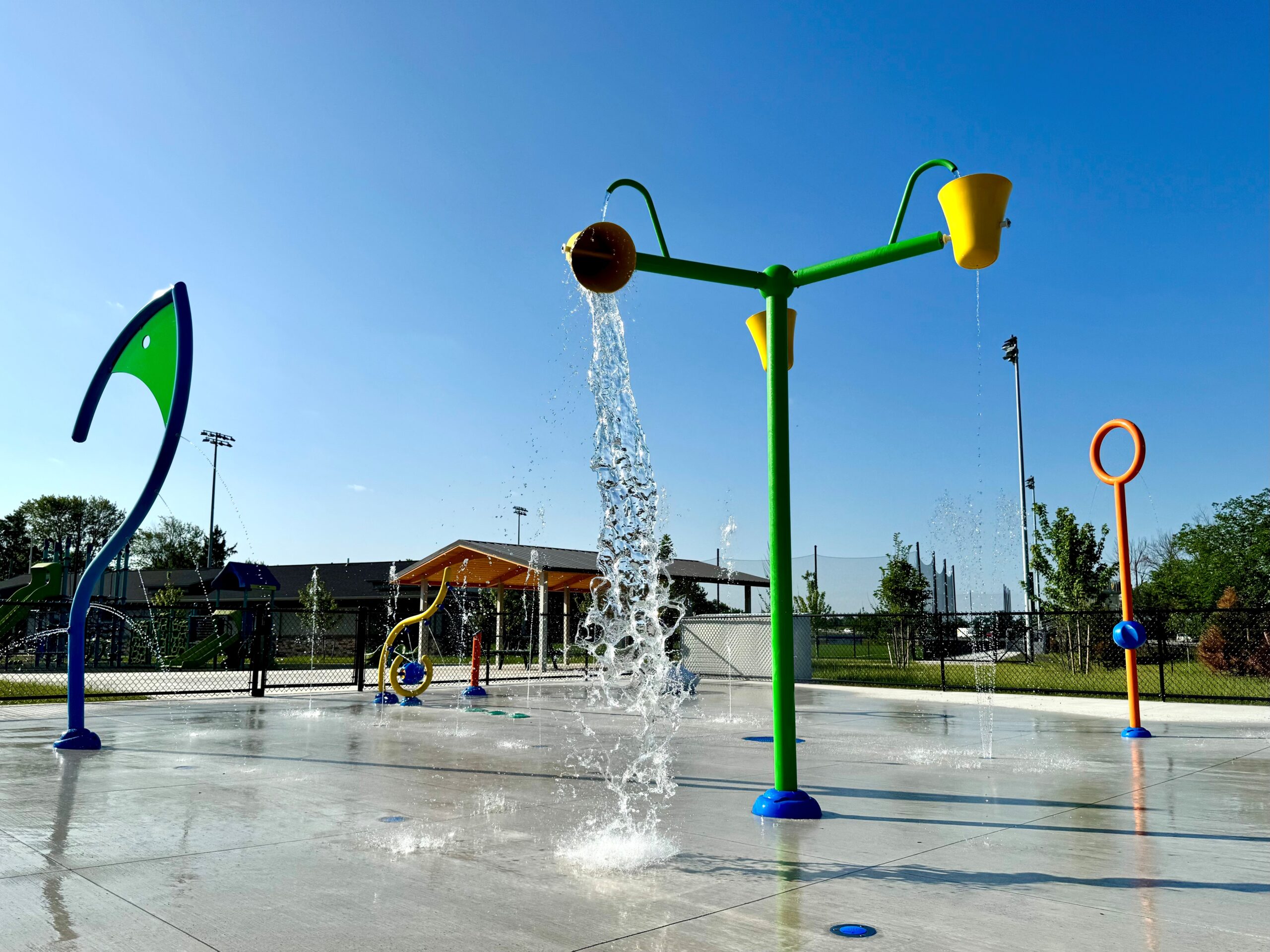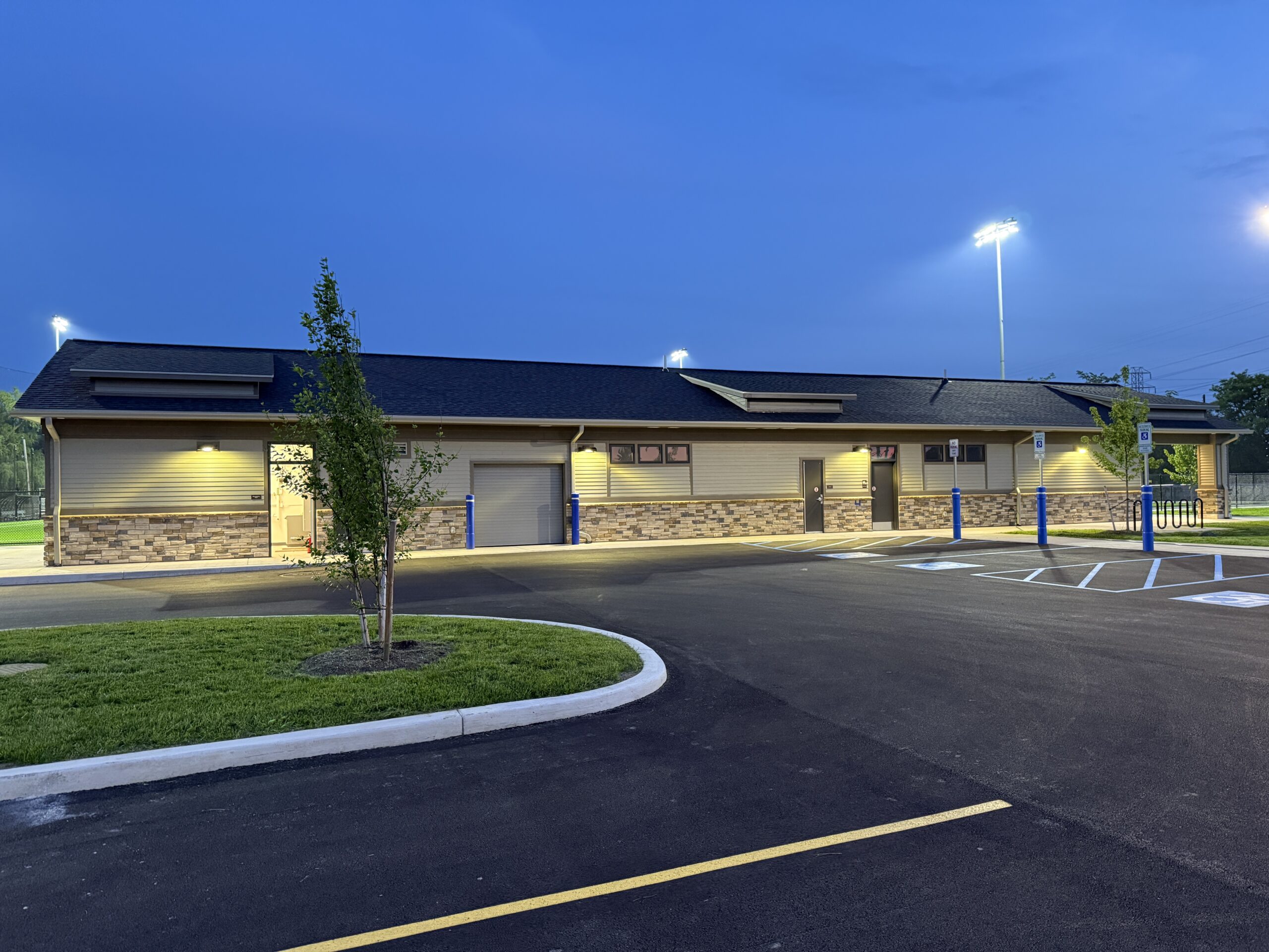 The completed work includes a new multi-use field built to NCAA Division II standards and a 3,300-square-foot field house featuring locker rooms, offices, a training room, concessions, storage, and fully accessible restrooms. The basketball court was resurfaced and updated with new equipment, while six tennis courts and two pickleball courts were added to accommodate growing interest in racket sports. Family-focused amenities such as a splash pad, a picnic pavilion, and a walking path with provisions for future adult fitness trails round out the enhancements.
